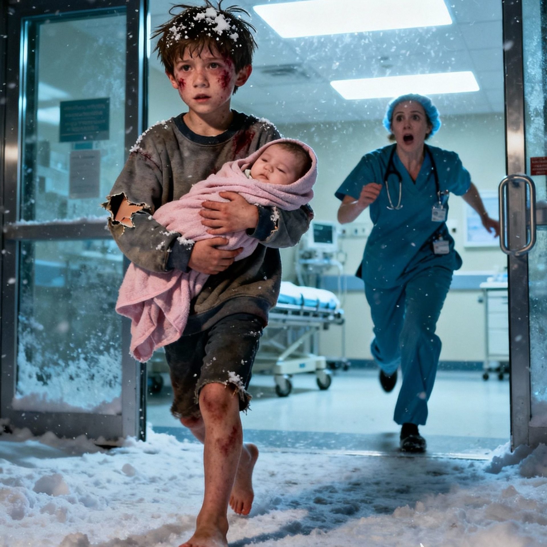 Just after midnight, Ethan Walker, a bruised seven-year-old boy, staggered into the emergency room of St. Mary’s Hospital in Illinois, holding his little sister wrapped in a thin blanket. The automatic doors slid open…